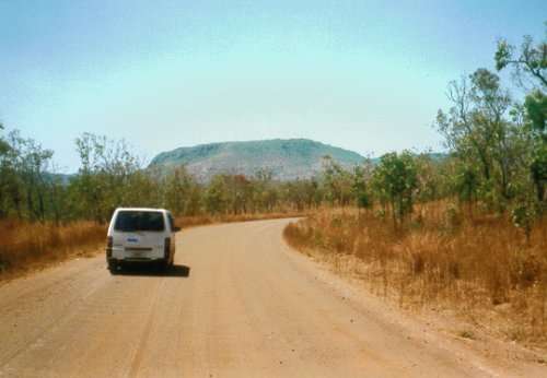 Via 'dirt-road' naar Gunlom falls. | ![]() |