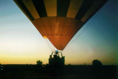 Vertrekken met luchtballon voor zonsopgang. | ![]() |