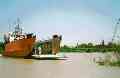 Omdat de brug is verzakt, moeten we de ferry nemen. | ![]() |