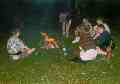 En 's avonds, gezellig rond een kampvuur... totdat het regent. |
