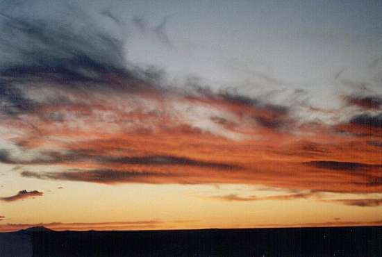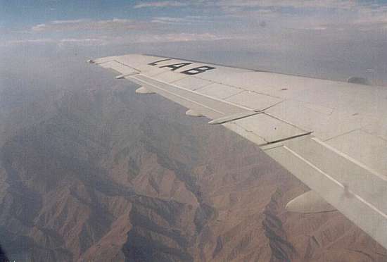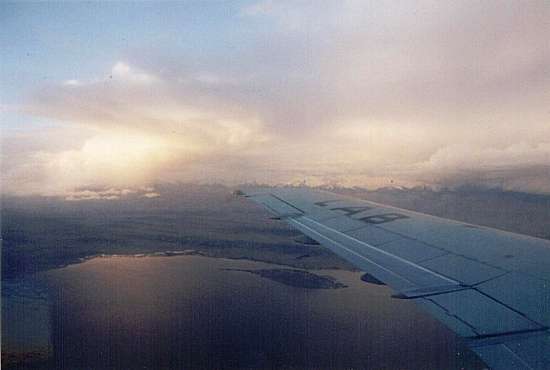Avond vlucht van Lima naar LaPaz, over het Titicacameer. | ![]() |