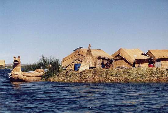 Een bezoek aan de drijvende riet eilanden (Uros). | ![]() |