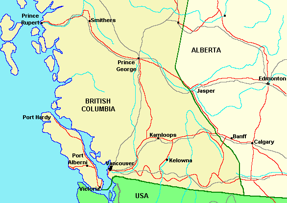| Ma 11/9 | Prince George - Prince Rupert [dagboek & foto's] * Tweede dag met de Skeena. * Via Skeena River tot Prince Rupert. * Avondmaal in haven, en weerom B&B. |