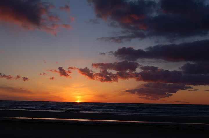 Om 16u15 rijdt Veerle richting Løkken. Om 18u30 houden we halt in Blokhus (op het strand) om te eten (weer 3 potten op het vuur) met een prachtige zonsondergang op de achtergrond. Om 20u15 rijden we naar Løkken (dit kan ook via het strand 16km), maar wij verkiezen de verharde wegen. Om 20u50 komen we toe op de stadscamping (strandcamping is pas in mei open). We worden hier in het Duits aangesproken, maar dat is geen probleem. We worden een plek toegewezen waarbij het wel een beetje manoeuvreren is om er in te geraken, maar het lukt. Hier genieten we van de warme douche (maar het is wel ijzig koud buiten). De kinderen kunnen morgenvroeg in de mobile-home een douche nemen... Er is hier ook een internet hotspot, dus voor een klein bedrag kan je 5u online. Voldoende om e-mails te sturen en wat nieuws uit België te lezen. Ondertussen begin ik ook aan het reisverslag te typen.