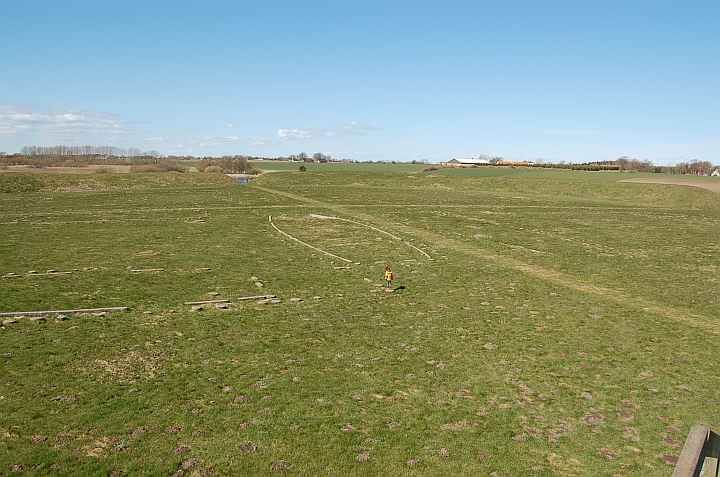 Tegen 11u rijden we dan door naar Trelleborg. De kortste route staat aangeduid met een hoogtebeperking van 3m20 : 10cm hoger dan de mobile-home. Normaal voldoende, maar ik wil het niet proberen en neem de langere route via Slagelse. Na Fyrkat is dit één van de 4 andere opgegraven Vikingforten. Deze is wel open op paasdag (op voorhand gecontroleerd op de website) en heeft een zeer uitgebreid museum met gedetailleerde uitleg over de bouw van het fort en over de periode waarin het gebouwd is. (In zoverre dat men dat na 1000 jaar nog exact kan achterhalen). Hier lopen ook Deens reënnactment acteurs rond om het geheel een nog realistischere uitstraling te geven.