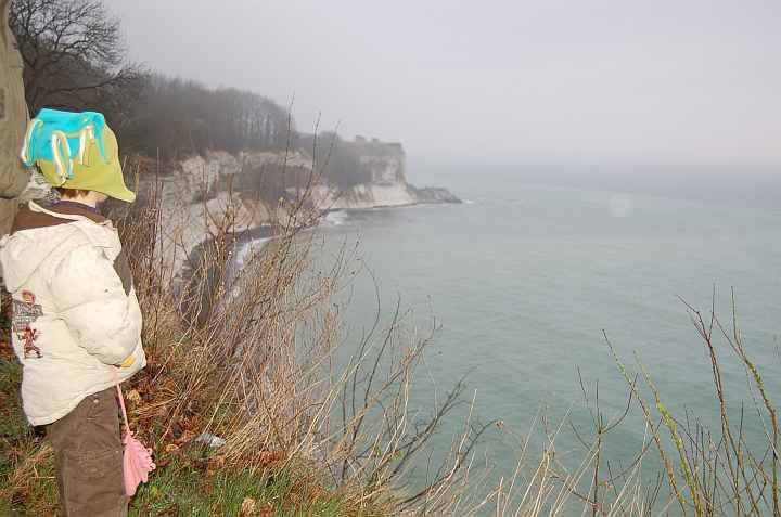 Via de GPS pik ik Stevn Klint uit als stopplaats (40m hoge witte kliffen). Na wat opzoekwerk in de brochures blijkt dat nabij Højerup een kerkje op de rand van de klippen staat (dat zelfs al gedeeltelijk naar beneden is gestort). Dus nog een extra bezienswaardigheid om de dag af te sluiten. Na een korte wandeling langs de kliffen (een voorsmaakje voor de 120m hoge kliffen van morgen) en een avondmaaltijd aan de vuurtoren van Stevn (gehuld in een misterieuse mist), rijden we richting het eiland Møn. Op een parkeerplaats voor vrachtwagens zetten we ons aan de kant en leggen we de kinderen in bed (bijna 21u).