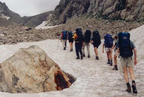 Via sneeuwplekken bereiken we de Col. | ![]() |