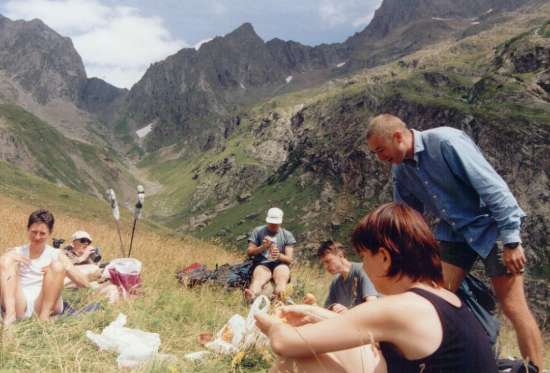 Middaglunch (op achtergrond de ander kant van Col de la Muzelle). |