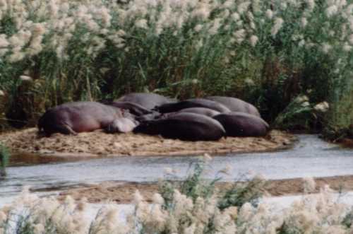 Laatste blik op Krugerpark: hippo's. | ![]() |
