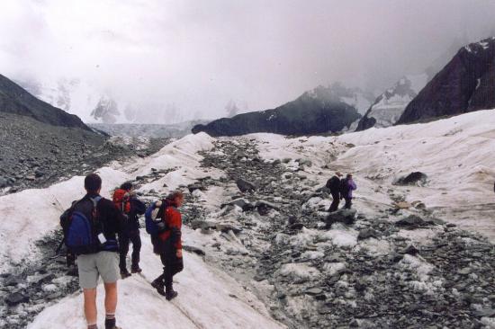 Na het middageten (aan de rand van de gletsjer) splitsen we even in twee groepen. De ene helft begint reeds aan de terugweg, de andere helft zet even een stapje op de gletsjer. Na de nodige foto’s wordt de achtervolging ingezet. Af en toe regen, af en toe zon (en soms tegelijkertijd) maken de afdaling er niet gemakkelijker op.