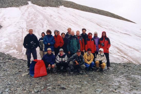 De kleinste kindjes willen ook eens van de "schuif-af" glijden en na een groepsfoto beginnen we aan de afdaling naar onze kampeerplaats. We volgen de beek tot aan de boomgrens (2250m). Hier wordt het kamp opgezet. Op de rotsige ondergrond is dit niet vanzelfsprekend. Uiteindelijk zijn we nog vrij vroeg in het kamp, zodat we kunnen rusten tot het eten om 18u klaar is. Soep en boekweit met een paprika-groenten-saus.