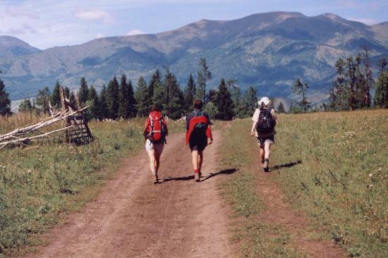 Na de rijstpap trekken we verder de vallei in, richting Тюнгур [Tyungur]. Gelukkig met minder modder dan gisteren, en op een vlakker pad. Onderweg zien we ook nog enkele petrogliefen (naar verluidt 6000 jaar oud).