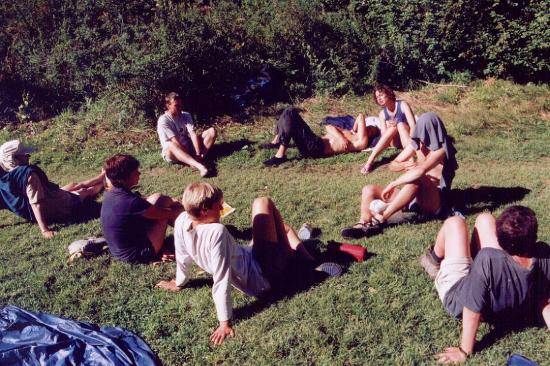 Omdat er in de winkel nog steeds geen bier is (blijkbaar zijn hier enkele weken geleden Belgen geweest), wordt de wandeling afgerond op de grasvelden van het basiskamp... met bier en fruitsap.