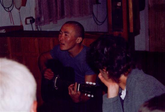 Luka biedt nog een gitaarconcertje aan en een vriend van hem trakteert ons op ... Mongoolse keelzang (boventoonzang).