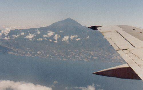 Vlak voor de landing op Tenerife, hebben we een zicht op de Teide. | ![]() |
