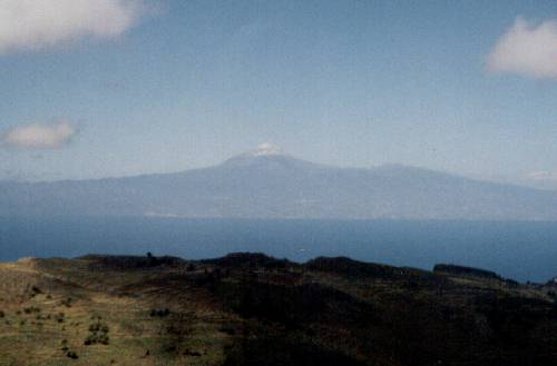 Op de terugweg (bus) zien we een besneeuwde Teide. | ![]() |