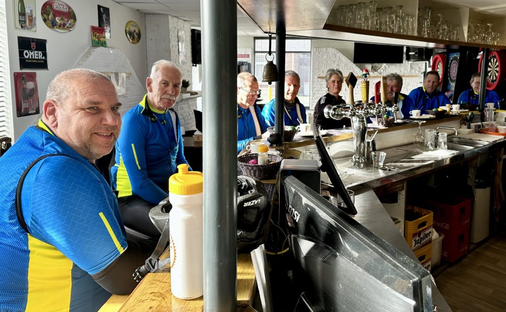 Als bij wonder brak bij onze aankomst de zon door en konden we nog wat nakaarten over de afgelopen rit, op het terras van ons lokaal café “Bij die van ons”.