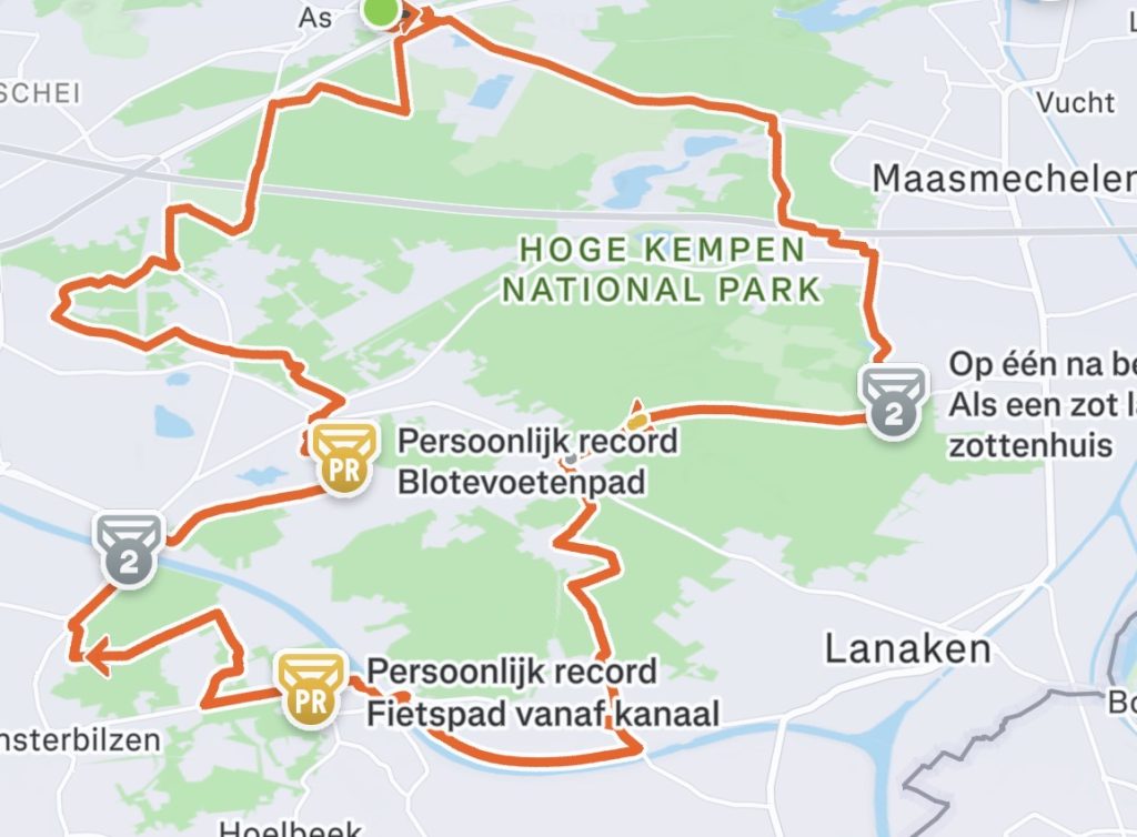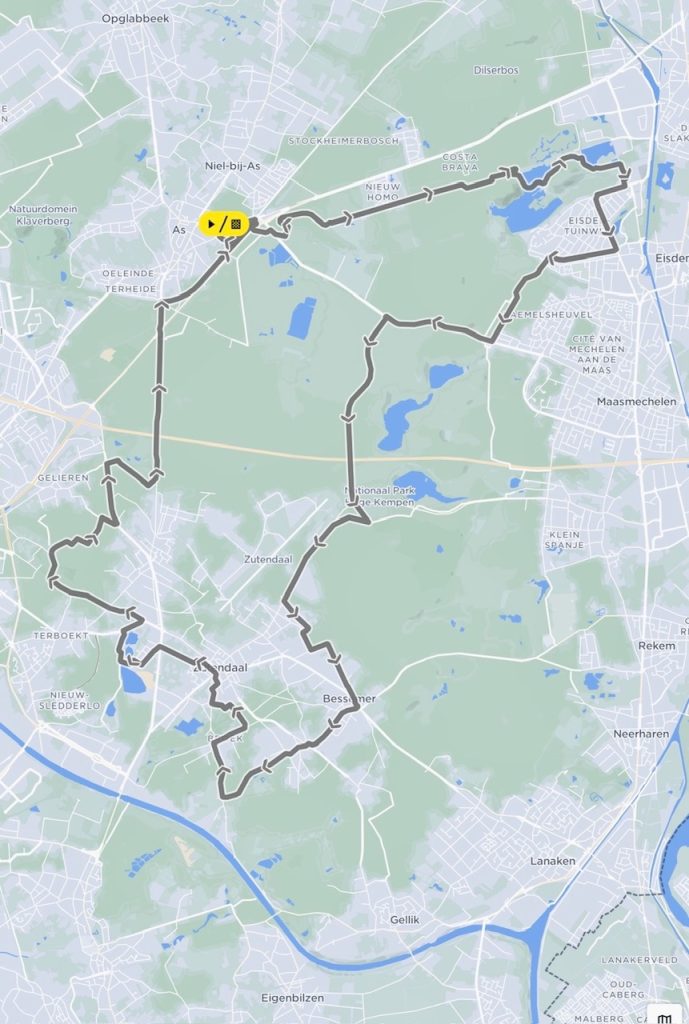 Van daaruit ging het verder richting Terhills Maasmechelen, Eisden, Zutendaal, en Wiemesmeer om via Genk terug te arriveren na 50 km in As.